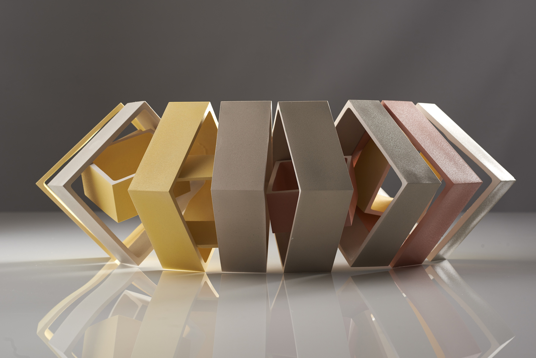 These series of object were made on a masters at The Royal College of Art 2011/13, an MA in Ceramics and Glass. The objects are slip-cast, glazed and treated with colour. The process used here to slip-cast uses glass equipment to cut and polish the bisc earthenware ceramic. The parts of the object are glazed and fired, then assembled. The research into these objects start with an interest in Si-Fi and the third dimensions of time and space that we see ourselves in.They also explore a deep interest in univeral principles and the cosmos at large.